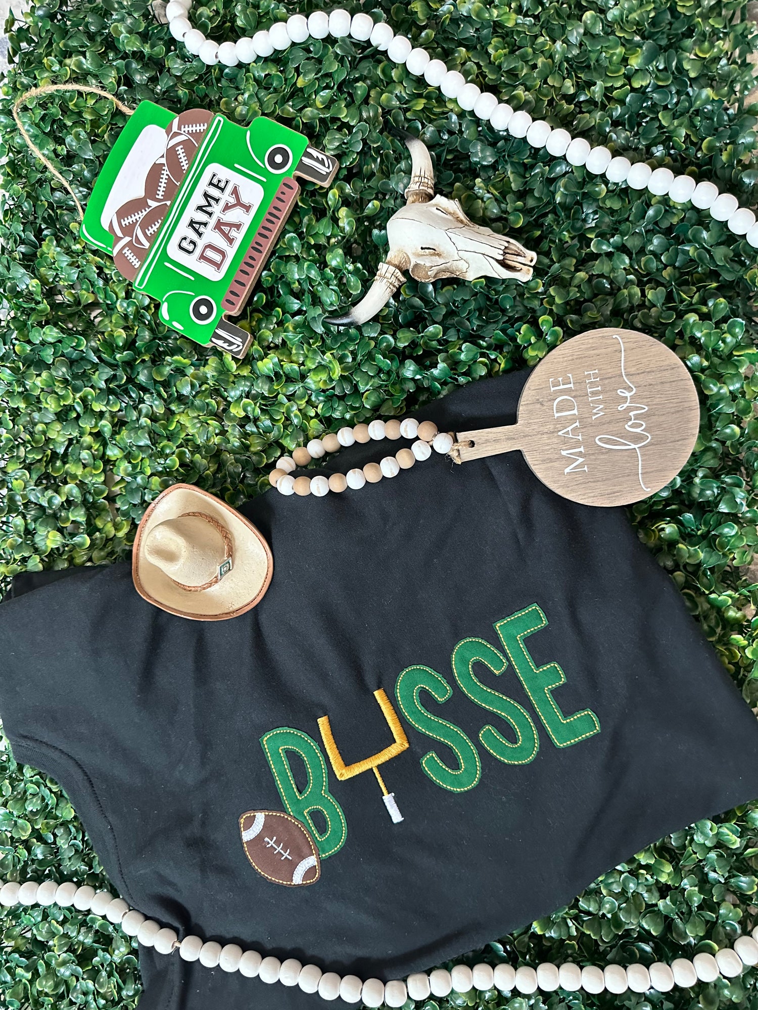 Nothing says Texas pride like football under the Friday night lights. This custom sweatshirt features bold green lettering, a stitched football, and a goalpost “Y” design that brings the whole look to life. Built tough with clean embroidery and playful details, it’s the perfect example of how we stitch spirit wear with attitude.